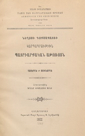 Նեղոսի Դոքսապատռի կարգագրութիւն Պատրիարքական Աթոռոցն : Հայերէն եւ յունարէն / Նեղոս Դոքսապատռ ; հրատ. Ֆրանց Նիկոլաուս Ֆինկ.