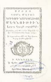 216 էջ։ Վեցածալ, մամուլանիշերը լատինատառ։ Շարվ. չափը 11,6X6 սմ: Տիտղթ. զարդափակ, վրան զարդ։ Էջախորագրերով։ 1 փորագիր պատկեր։ Գլխազարդեր, վերջազարդեր և զարդագրեր։ Բնագիրը 12 կետաչափի բոլորագրով, օգտագործված է նաև նոտրգիր։